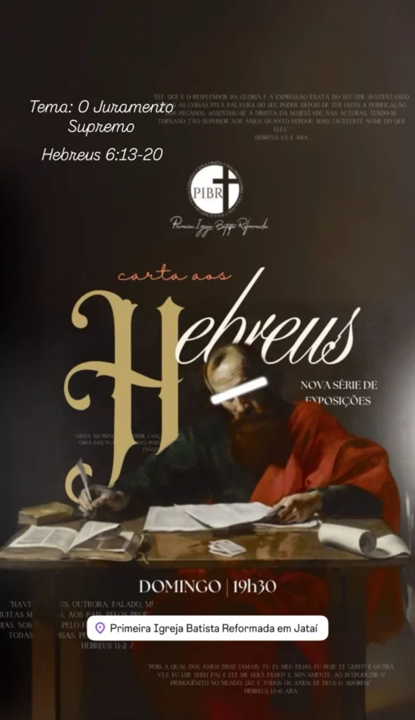 Na pregação de hoje, meditamos sobre o Juramento Supremo de Deus registrado em Hebreus 6.13-20. O texto nos mostra que, quando o Senhor fez uma promessa a Abraão, não havendo ninguém maior por quem jurar, Ele jurou por si mesmo. Esse ato revela a grandeza de Deus e a segurança absoluta de Suas promessas. Enquanto nós somos falhos e inconstantes, Deus é imutável e não pode mentir. Seu juramento é eterno, perfeito e digno de toda confiança.